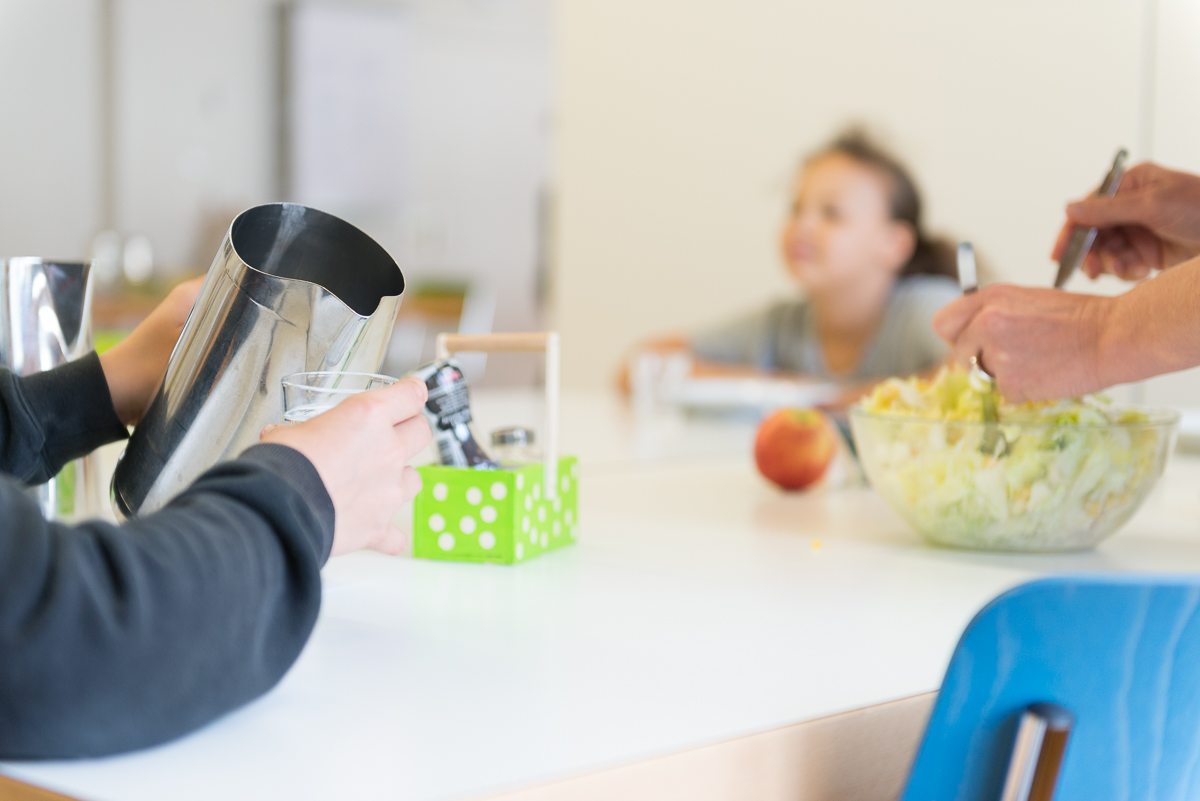 Die gemeinsamen Mahlzeiten bilden einen wichtigen Förderbereich im Schulalltag. Mehr dazu unter Angebot.