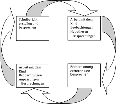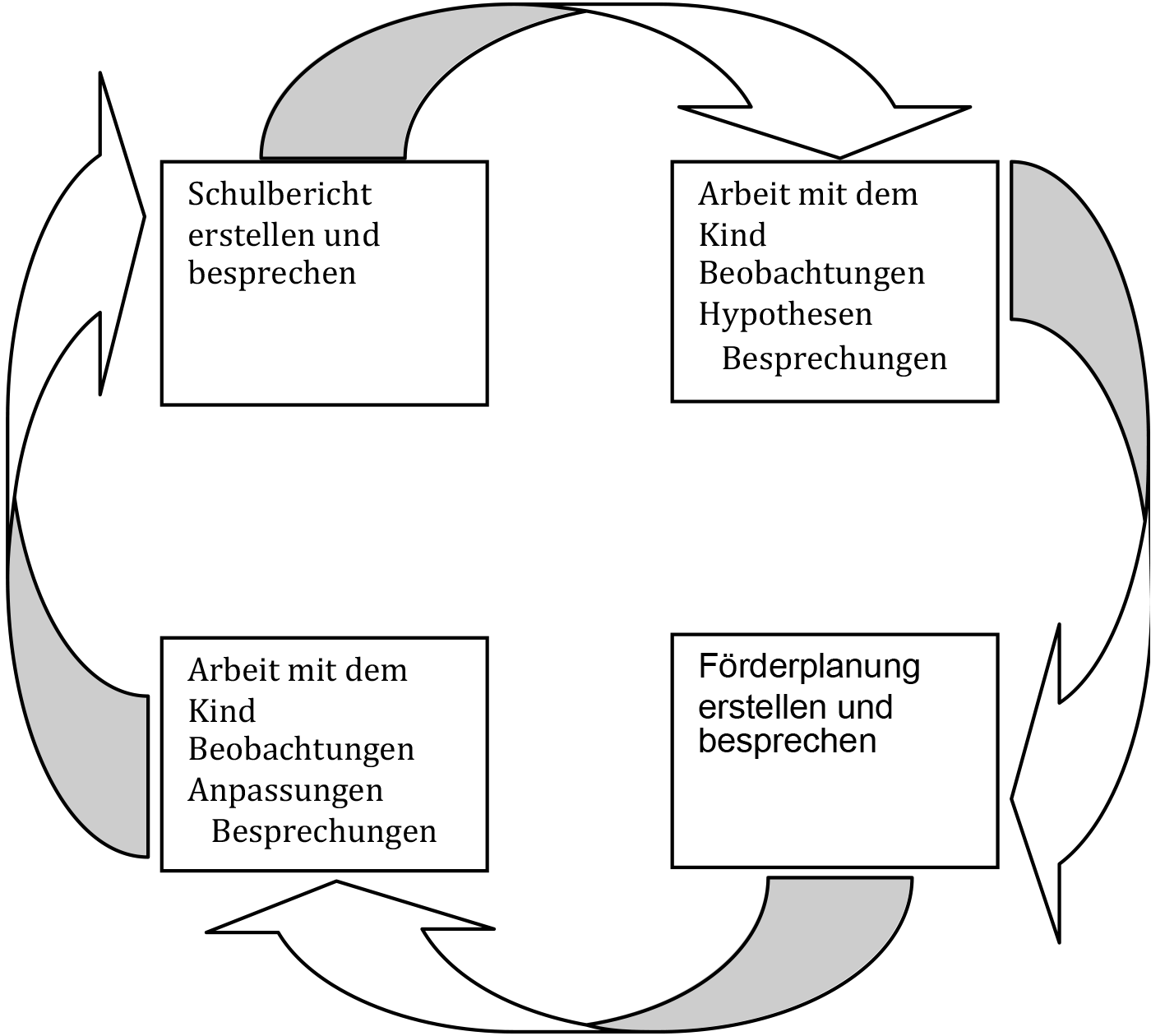 Mit dem institutionalisierten förderdiagnostischen Prozess liegt ein Instrument vor, um die individuelle Diagnostik und Förderung zu planen, durchzuführen, zu überprüfen und anzupassen. Der Prozess wird im Folgenden dargestellt: