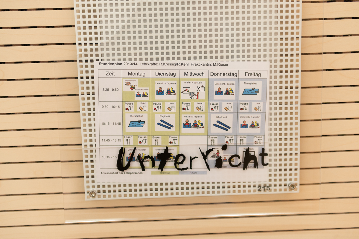 Die Schülerinnen und Schüler besuchen den Unterricht an unserer Tagessonderschule an fünf Tagen pro Woche. Je nach Alter, Entwicklungsstand und Behinderung der Kinder kann ein reduziertes Pensum sinnvoll sein mit dem Ziel, die Unterrichtszeiten kontinuierlich zu erhöhen. Die Blockzeiten, gemäss Reglement über die Unterrichtsorganisation des Erziehungsrates vom 29. August 2007 werden berücksichtigt. Die Schülerinnen und Schüler werden bereits während dem Schulbustransport betreut, wie auch zwischen Ankunft in der Schule und dem Unterrichtsbeginn.